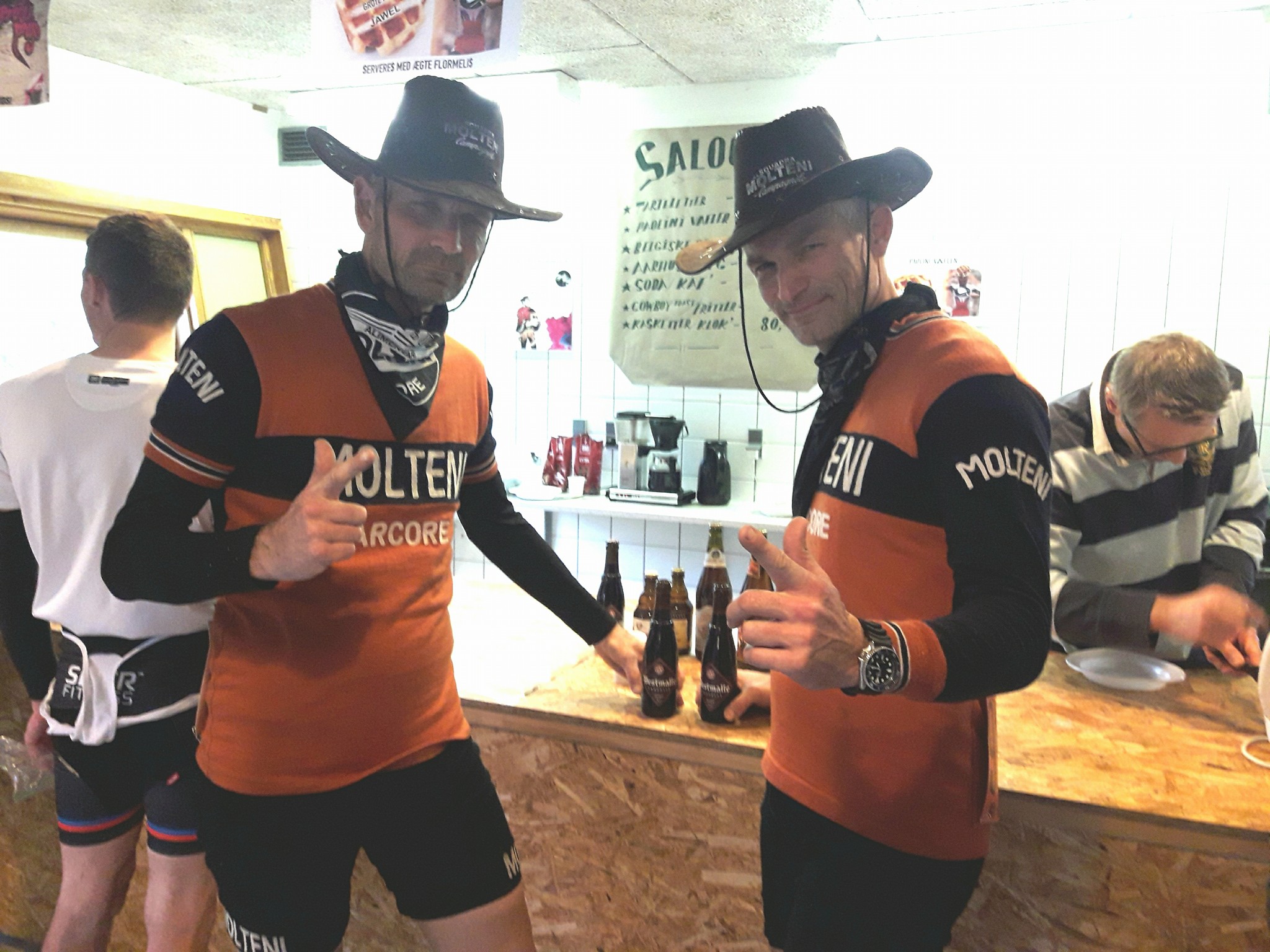 – For det første, var der problemer med at få vores cowboyhatte godkendt som cykelhjelm. Vi måtte flere gange fortælle, at hattene var godkendt af D.C.U – Dansk Cowboyder Union, men en meget emsig kommissær, mente ikke, at han havde hørt om dette. Det hjalp dog på kommissærerens hukommelse, da Niels “SixShooter” Bjørnsteen, sammen med Smith&Wesson, tog en venskabelig “snak” med ham, fortæller Grane “Rattlesnake” Maaløe.